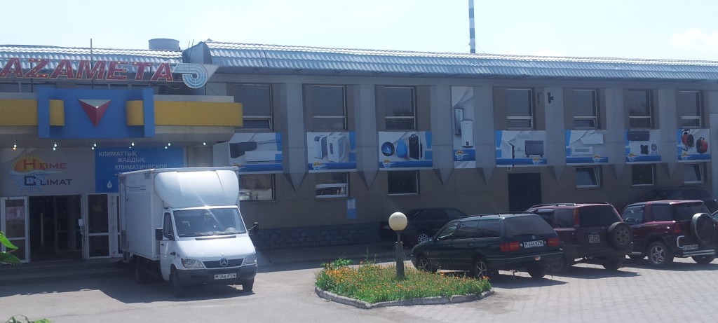 рекламную акцию в Казахстане, где мы не только разместили информационные материалы, но и полностью оформили торговый павильон и здание торгового центра для нашего постоянного партнера, компании «Hi-Tech Climate»