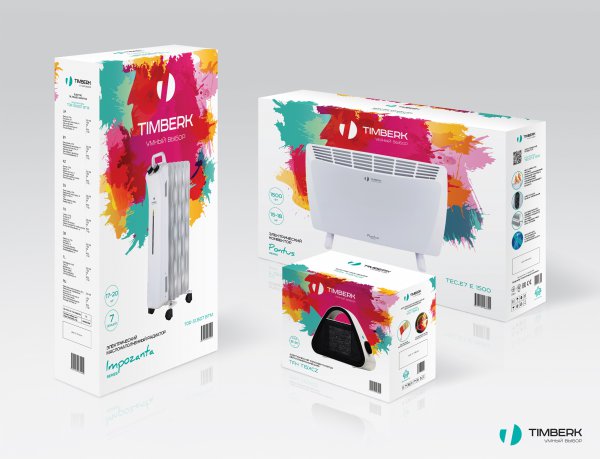 Этой осенью мы решили добавить немного ярких красок и хорошего настроения в дизайн коробок для тепловой и климатической техники Timberk. Необычный, запоминающийся многоцветный принт, который лег в основу новой дизайн-концепции, выгодно отличает упаковку Timberk в череде стандартных решений, традиционно применяемых для дизайна коробок климатической техники.